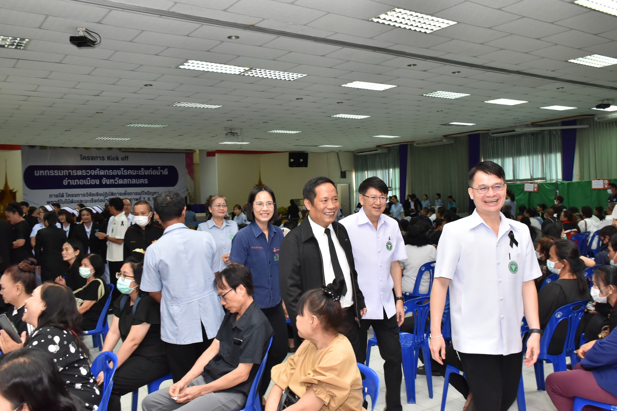 วันที่ 12 พฤศจิกายน 2568 สถาบันวิจัยมะเร็งท่อน้ำดี นำโดย รศ.ดร.วัชรินทร์ ลอยลชม ผู้อำนวยการสถาบันฯ และ ผศ.นพ.อรรถพล ติตะปัญ หัวหน้าศูนย์ความเป็นเลิศทางการแพทย์มะเร็งท่อน้ำดี โรงพยาบาลศรีนครินทร์ และกรรมการสถาบันฯ ร่วมกับ สำนักงานสาธารณสุขจังหวัดสกลนคร โรงพยาบาลสกลนคร โรงพยาบาลค่ายกฤษณ์สีวะรา สำนักงานสาธารณสุขอำเภอเมืองสกลนคร องค์การบริหารส่วนจังหวัดสกลนคร เทศบาลนครสกลนคร และภาคีเครือข่าย จัด “โครงการ Kick off มหกรรมการตรวจคัดกรองโรคมะเร็งท่อน้ำดี อำเภอเมืองสกลนคร จังหวัดสกลนคร” โดยได้รับเกียรติจาก นายวีรรัตน์ ธีรมิตร รองผู้ว่าราชการจังหวัดสกลนคร เป็นประธานเปิดพิธี นพ.พรพัฒน์ ภูนากลม นายแพทย์สาธารณสุขจังหวัดสกลนคร กล่าวรายงาน รศ.ดร.วัชรินทร์ ลอยลม กล่าวถึงที่มาและความสำคัญของโครงการ และ น.ส.จิราภรณ์ เบิกบานดี นายอำเภอเมืองสกลนคร กล่าวต้อนรับ ณ อาคารเอนกประสงค์เทศบาลนครสกลนคร