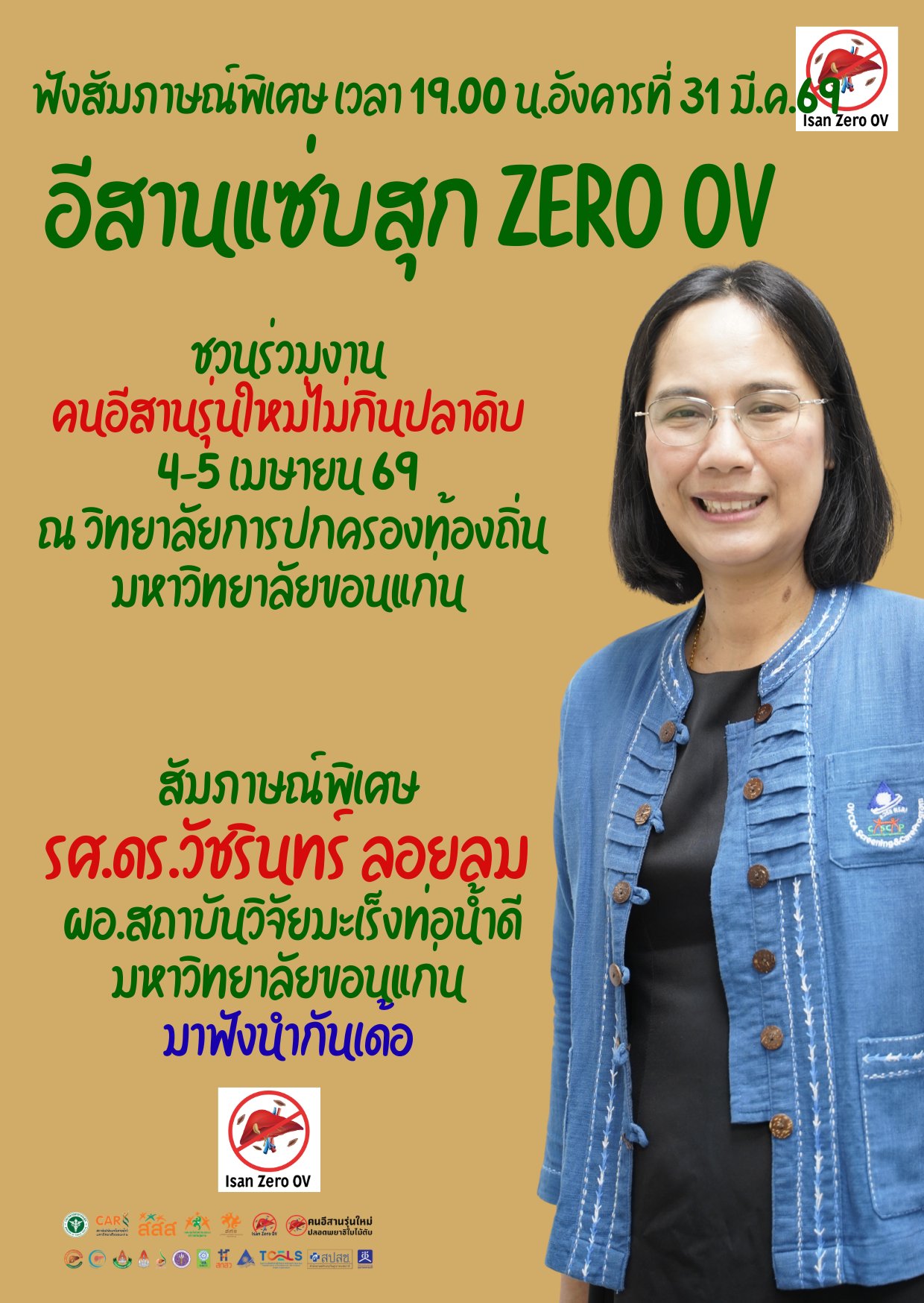 Join us for a major event on April 4-5 at the College of Local Administration, Khon Kaen University. This event invites people of all ages to undergo liver fluke screening, and to watch and cheer on the youth in the competition. There's also a chance to see the winning team, and Prime Minister Anutin Charnvirakul might even personally present the trophy. Come and listen!